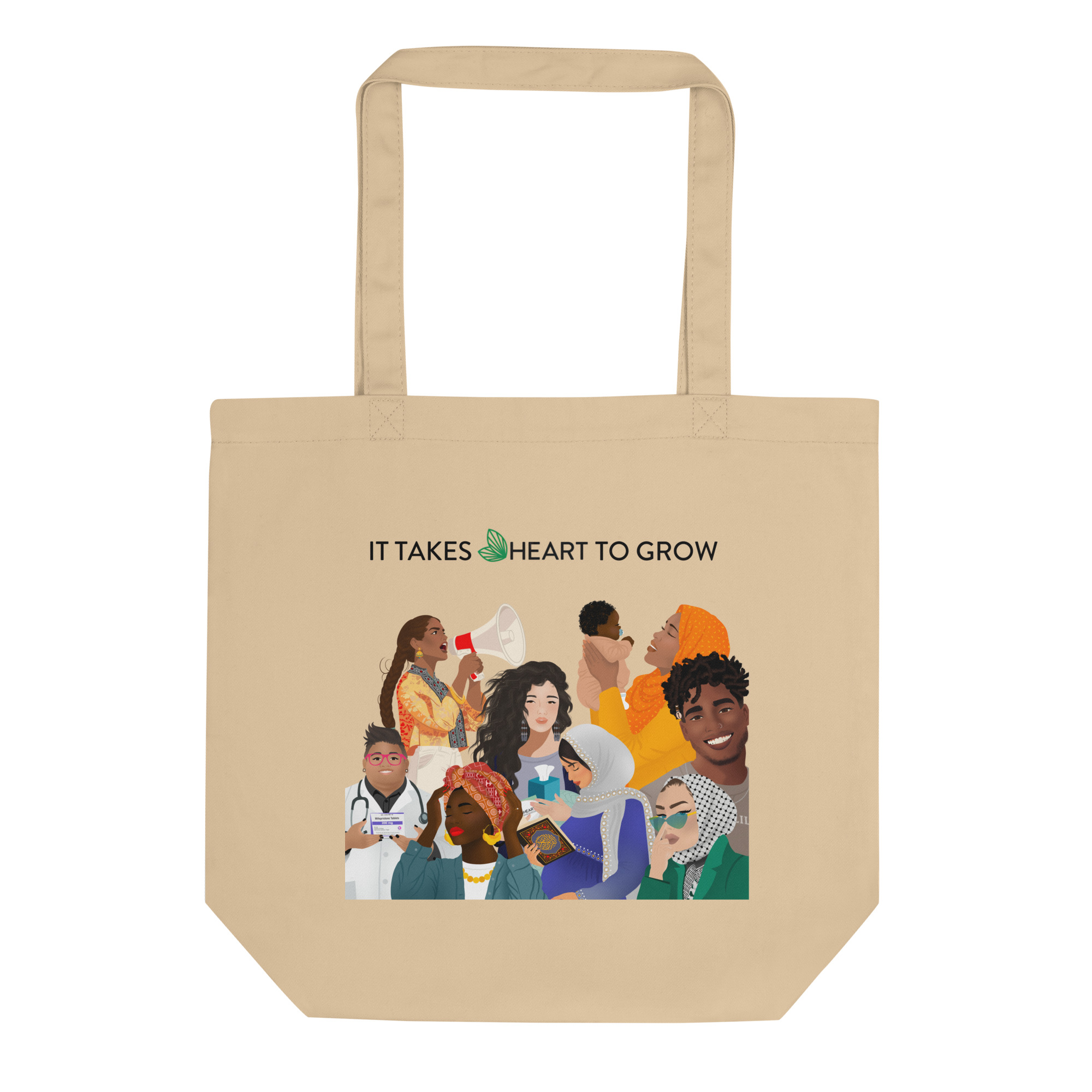 We believe it takes HEART to grow a healthy relationship, a thriving workplace, an interdependent community grounded in care, safe and inclusive Muslim spaces, a practice for informed decision making, understanding about oneself and one’s body, and so much more! Support us by wearing our tote!